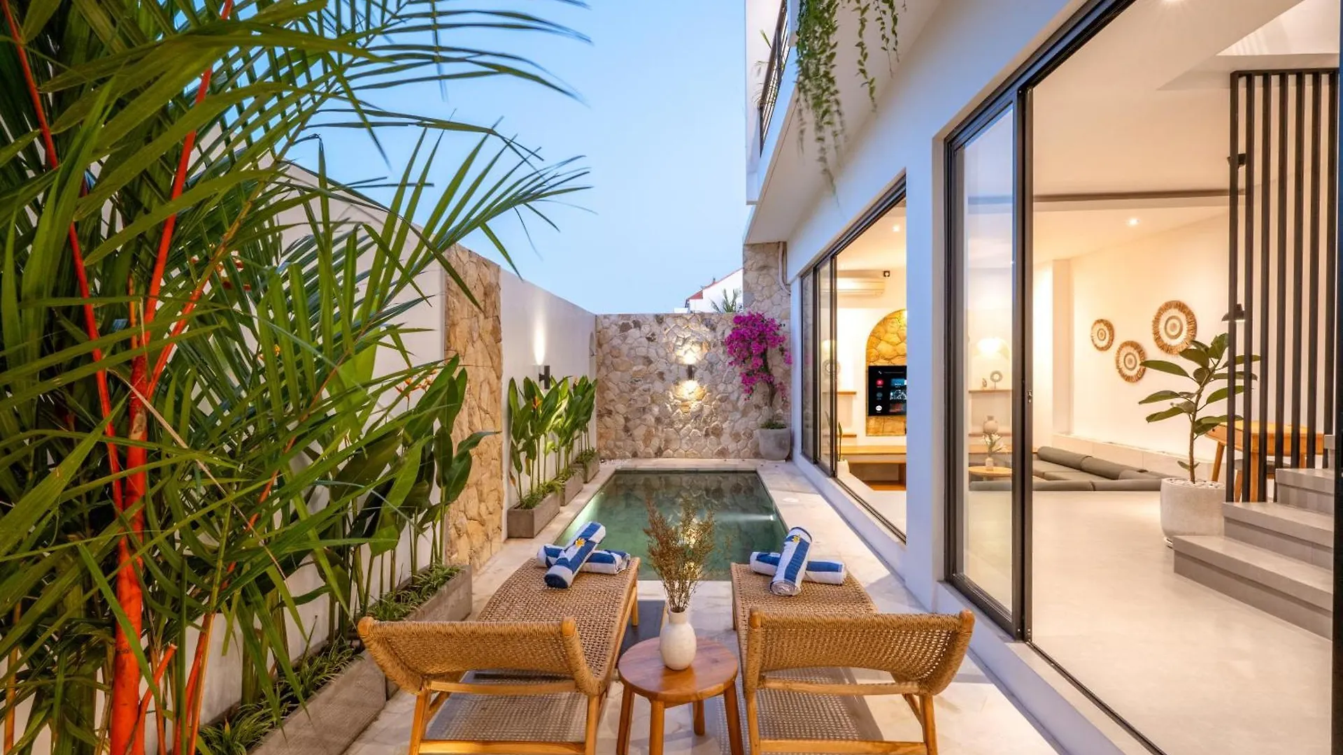 Gasten kunnen maaltijden bereiden in een ingerichte keuken of dineren in een eetgedeelte. U kunt ook gebruikmaken van een waterkoker, een koelkast en een oven om uw eigen maaltijd te bereiden. JIB Fusion biedt Indiase gerechten en ligt op 350 meter afstand. Fietsverhuur naast een privézwembad zijn beschikbaar bij de gesitueerde in Denpasa Le Ayu Villa Canggu.